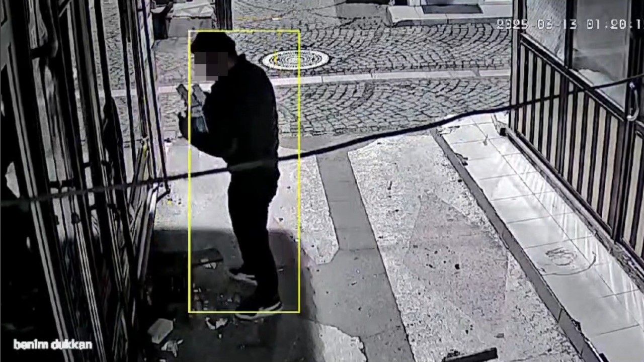 Mağazaya girmek için iki kez kapıyı tekmeleyen şüpheli başarılı olamayınca dakikalarca oturup ne yapacağını düşündü. Ardından mağazanın önünde tur atmaya başlayan şüphelinin kimi zaman çekirdek yemesi yok artık dedirtti. Daha sonra bulduğu taşla mağazanın camını kıran hırsız, ellerini kesmesine rağmen cep telefonlarını ve tabletleri çalmak için adeta zamanla yarıştı. Vitrinden çaldığı ürünleri montunun cebine dolduran şüpheli, hızlıca olay yerinden kaçtı.