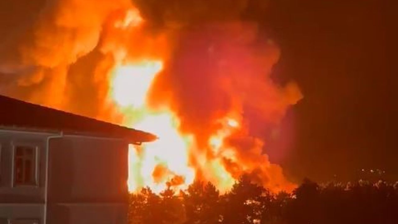 Fabrikanın büyük çapta maddi hasar gördüğü öğrenilirken, ekiplerin yangına müdahalesi devam ediyor. Öte yandan, yangın bölgesi havadan görüntülendi.