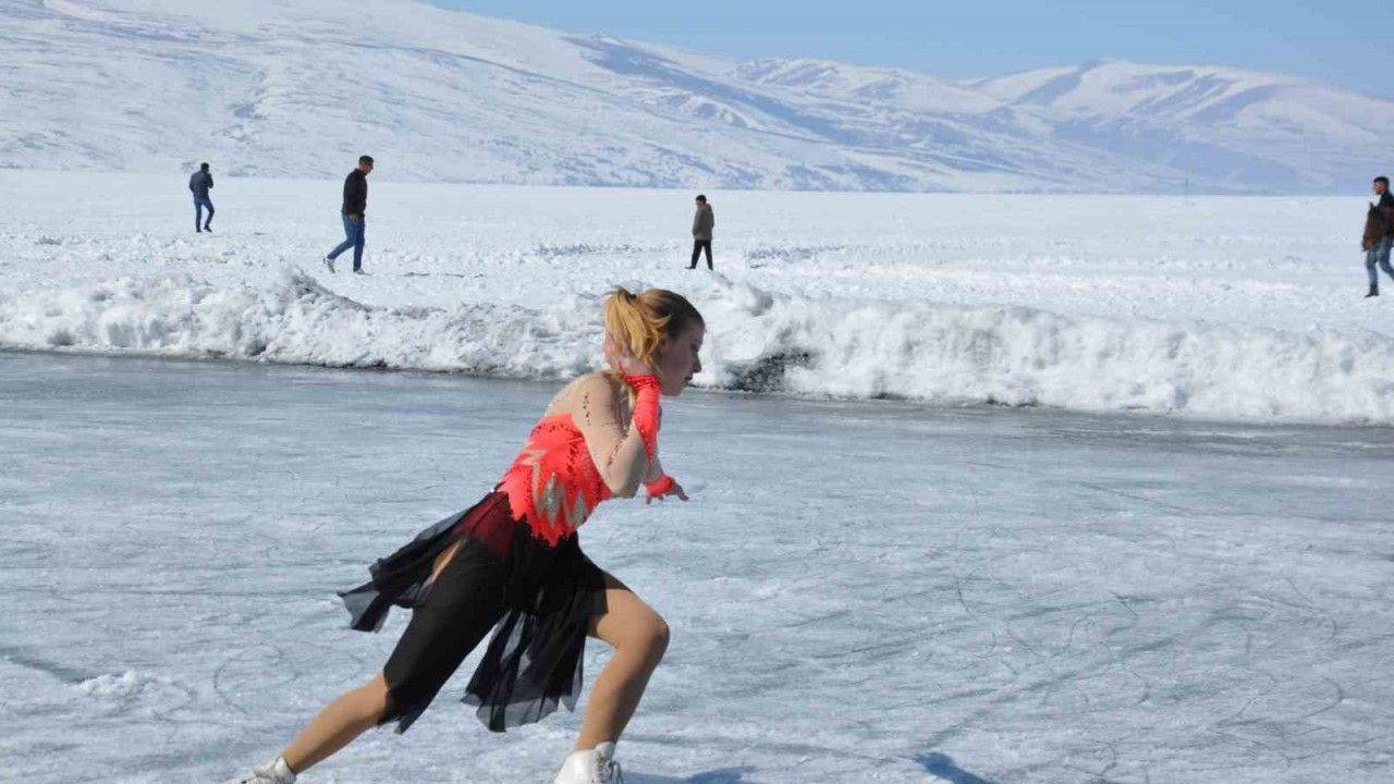 Türkiye Buz Pateni Federasyonu Senkronize Buz Pateni Kadın Milli Takımı, buzla kaplı Çıldır Gölü’nde muhteşem gösteriye imza attı.