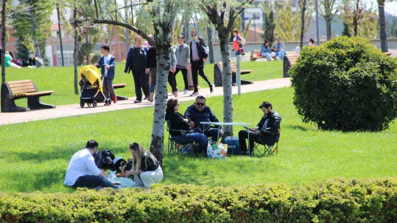 Çorum’da hava sıcaklıklarının mevsim normallerine dönmesinin ardından pazar tatilini değerlendirmek isteyen vatandaşlar, Millet Bahçesi’ne akın etti.