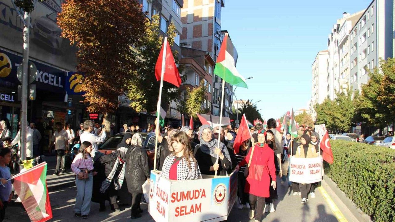 Çorum’da, İsrail’in Gazze’deki soykırımını protesto etmek amacıyla yürüyüş düzenlendi. Çorum Valiliği önünde toplanan kalabalık, açtıları pankartlarla, sloganlar eşliğinde Hürriyet Meydanı’na kadar yürüdü. Yürüyüşün ardından vatandaşlar, Gazzeliler için dua etti. Yürüyüşe Çorum Belediye Başkanı Dr. Halil ibrahim Aşgın, Hitit Üniversitesi Rektörü Prof. Dr. Ali Osman Öztürk, siyasi parti ve STK temsilcileri de katılarak vatandaşlara destek verdi.