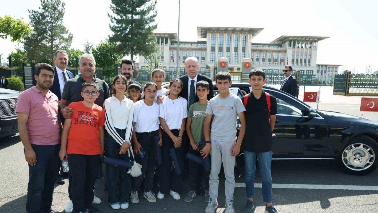 Cumhurbaşkanı Recep Tayyip Erdoğan, 15 Temmuz Şehitler Anıtı’nı ziyaret etmek üzere Adıyaman’dan Ankara’ya gelen çocuklarla bir araya geldi.