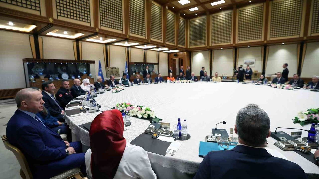 Cumhurbaşkanı Recep Tayyip Erdoğan, 1 Mayıs Emek ve Dayanışma Günü dolayısıyla işçi, memur ve işveren temsilcileriyle Cumhurbaşkanlığı Külliyesi'nde bir araya geldi.