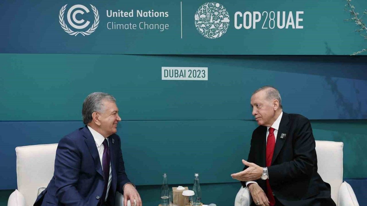 Cumhurbaşkanı Erdoğan, Birleşmiş Milletler İklim Değişikliği Çerçeve Sözleşmesi 28’inci Taraflar Konferansı’na (COP28) katılmak üzere geldiği Expo City Dubai’de temaslarını sürdürüyor. Cumhurbaşkanı Erdoğan, Özbekistan Cumhurbaşkanı Şevket Mirziyoyev ile bir araya geldi.