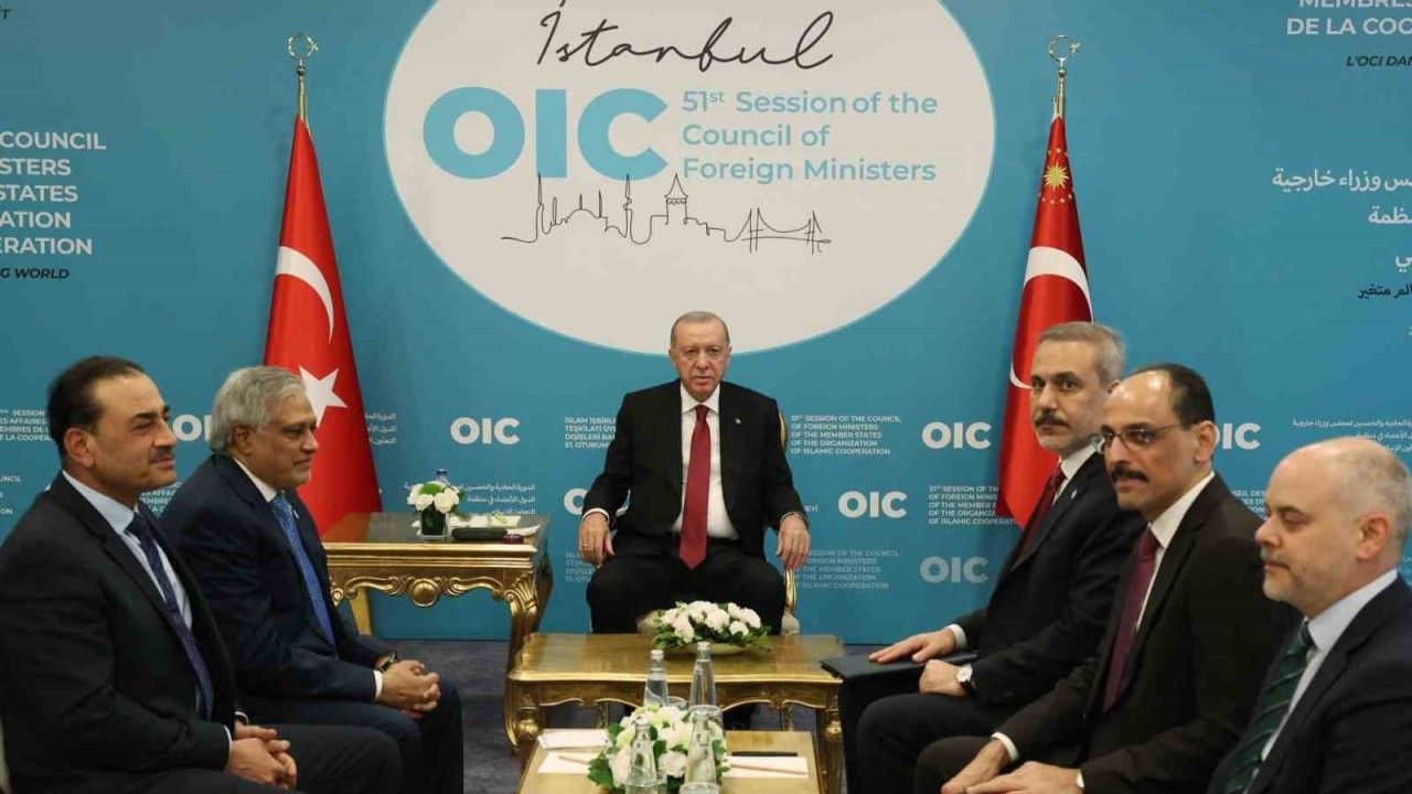 Cumhurbaşkanı Recep Tayyip Erdoğan, İstanbul’da İslam İşbirliği Teşkilatı Dışişleri Bakanları Konseyi Toplantısı için Türkiye’de bulunan Pakistan Dışişleri Bakanı Muhammet İshak Dar ve Pakistan Kara Kuvvetleri Komutanı Asim Munir’i kabul etti.