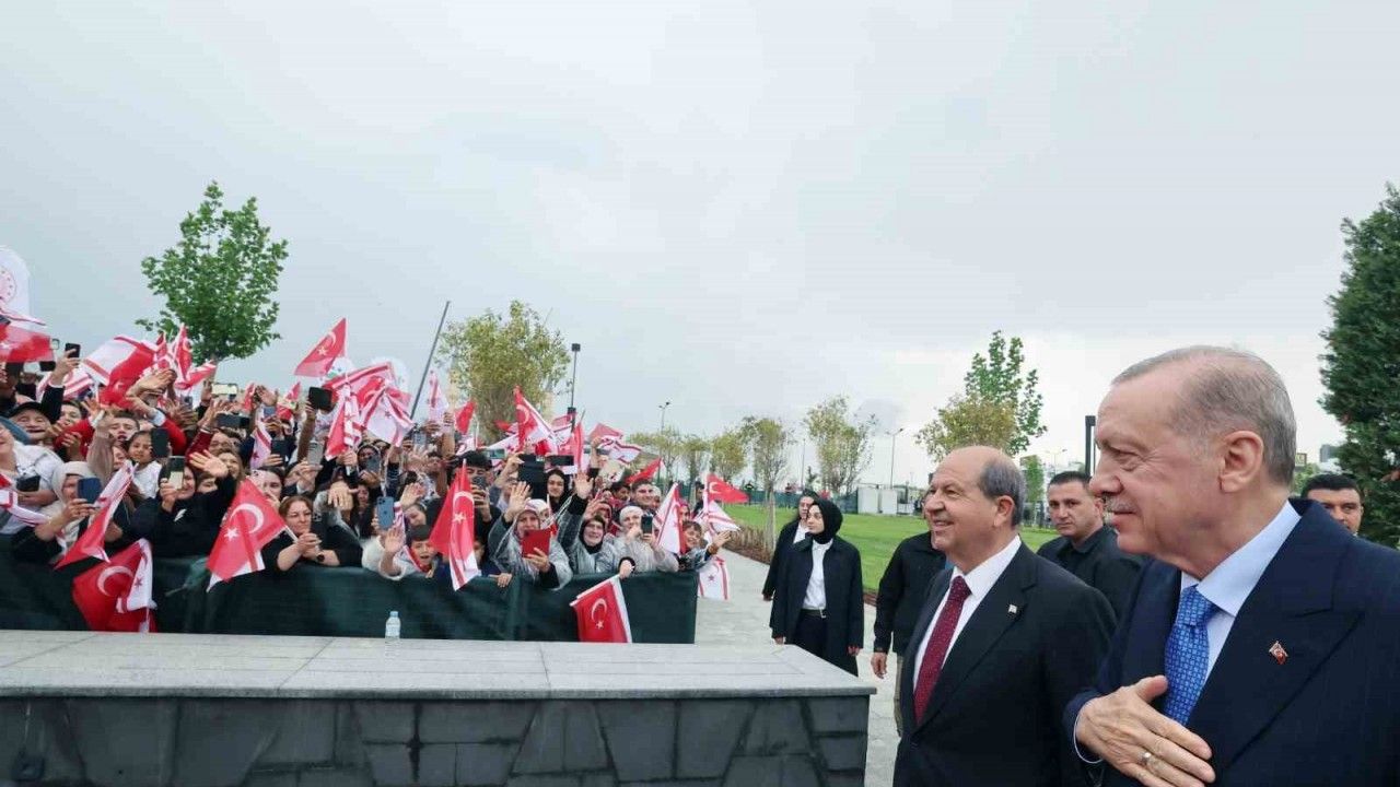 Cumhurbaşkanı Recep Tayyip Erdoğan, KKTC Cumhuriyet Yerleşkesi önünde halk tarafından büyük ilgiyle karşılandı.