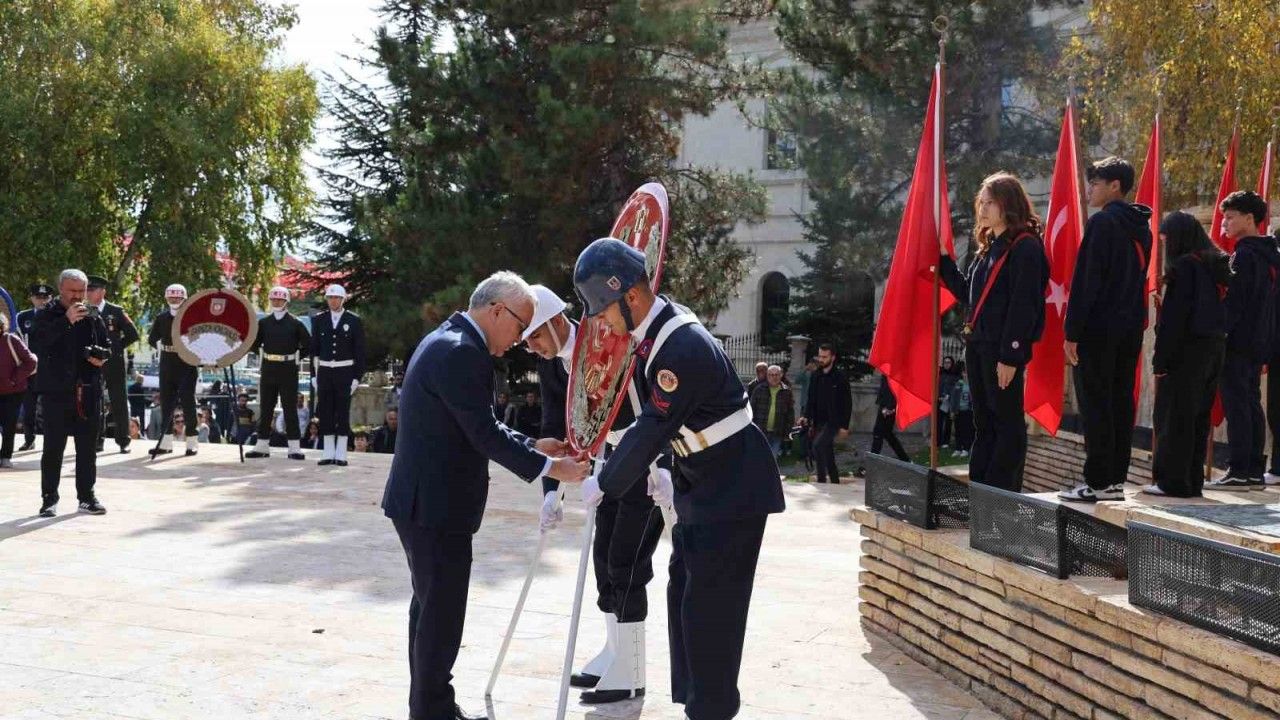 29 Ekim Cumhuriyet Bayramı programları çerçevesinde Atatürk anıtında tören düzenlendi. Çelenk sunma törenine Sivas Valisi Yılmaz Şimşek, 5’nci Piyade Eğitim Tugay Komutanı Tuğgeneral Zeynel Abidin Alptekin, Belediye Başkanı Adem Uzun, Sivas Cumhuriyet Başsavcısı Mehmet Akif Aktaş, İl Emniyet Müdürü Ahmet Alaağaçlı, İl Jandarma Komutanı Albay Adem Taşkın ve protokol üyeleri katıldı. Törende Vali Şimşek, Tuğgeneral Alptekin ve Belediye Başkanı Adem Uzun Atatürk anıtına çelenk sundu. Saygı duruşunda bulunulması ve İstiklal Marşı’nın okunmasının ardından Kongre Müzesi bahçesinde vatandaşlara fidan dağıtıldı.