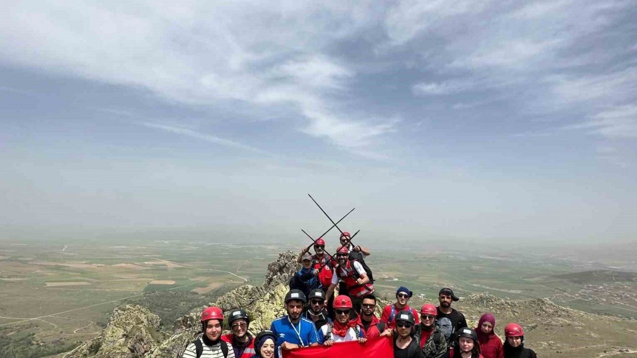 KIRŞEHİR(İHA) – Kırşehir’de dağcılar 19 Mayıs Atatürk’ü Anma, Gençlik ve Spor Bayramı’nı bin 530 metre yüksekliğindeki Davullu Zirvesi’nde kutladı.
