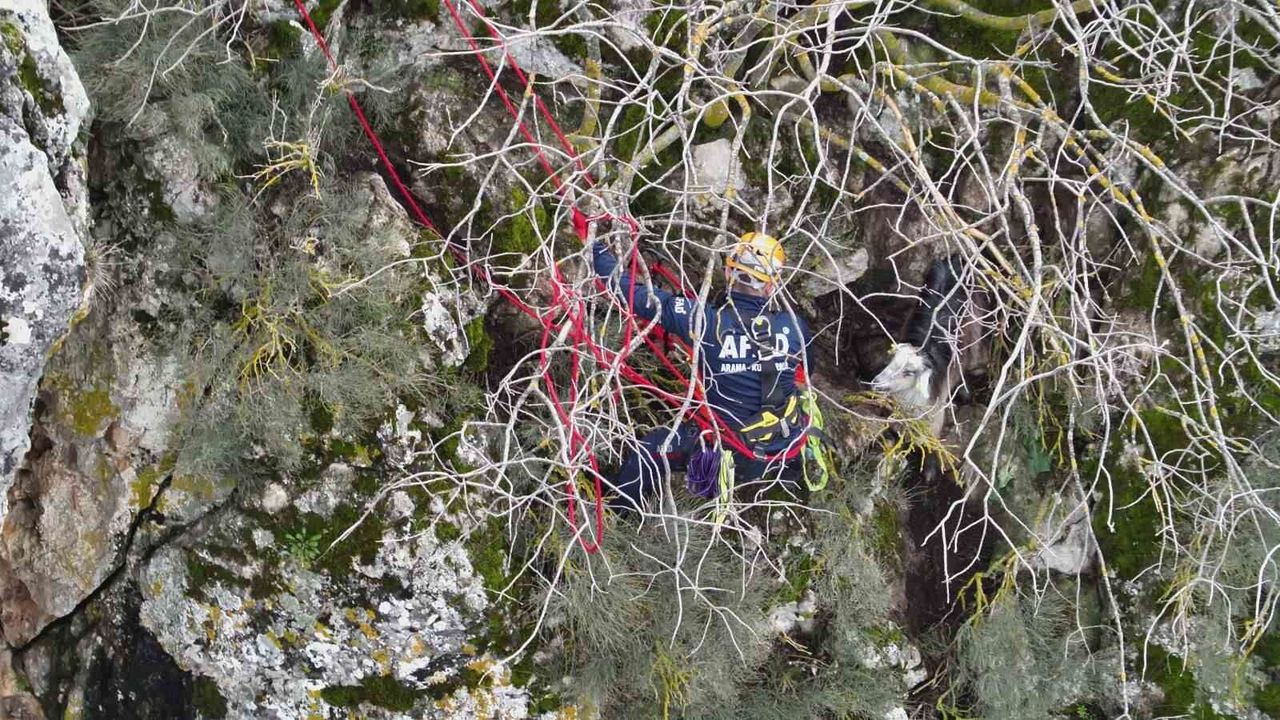 Burdur'un Çeltikçi ilçesinde dağlık alanda mahsur kalan keçi, ekiplerce kurtarılarak sahibine teslim edildi.