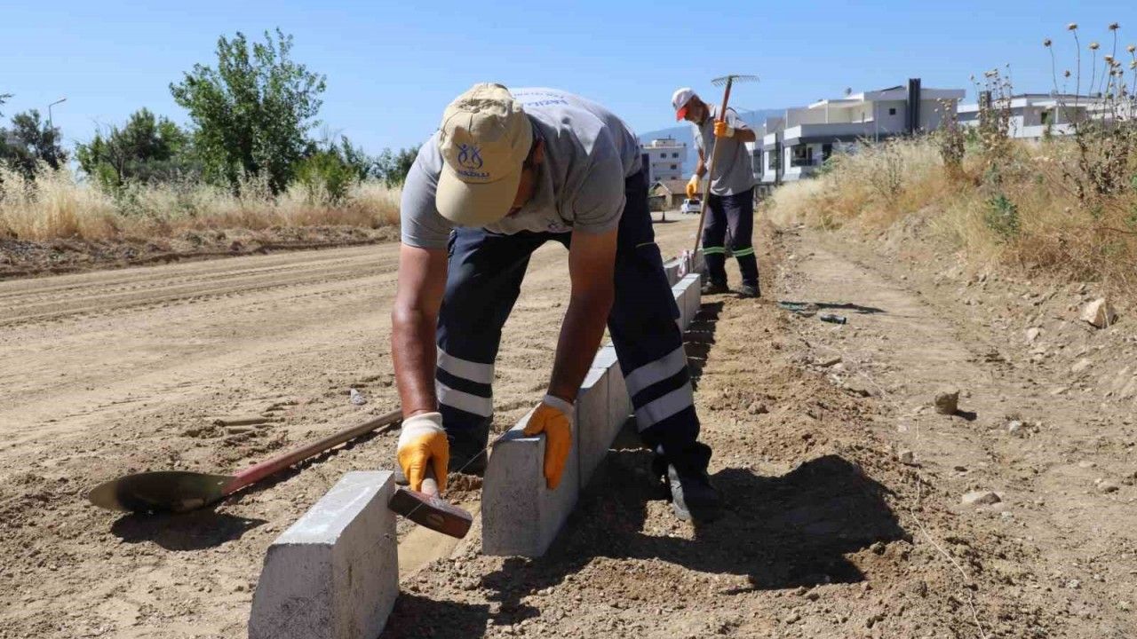 Çevresinde yeni yerleşim alanları, okul ve parkların bulunduğu bölgenin stabilizesini yapan ekipler, yolun kenar bordürlerini hazırlayarak parke taşı döşemeye hazır hale getirdi.