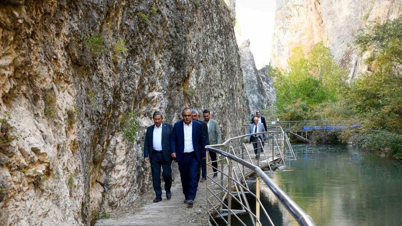 MASKİ Genel Müdürü Sinan Çeçen ise, "Şu an Darende Belediye Başkanımızla beraber kanyondayız. Sayın Başkanımızın da belirttiği gibi 2025 yatırım programını planlarken Darende merkezinde dönemsel olarak yaşanan su sıkıntısının çözümü noktasında bu kanyondaki suyun yeterli debiye sahip olduğunu gördük. Teknik ekibimizle birlikte fizibilite çalışmalarını tamamladık ve 2025 yatırım programı kapsamında hamdolsun işe başladık. Nasip olursa bir aya kadar da işletmeye almayı planlıyoruz" dedi.