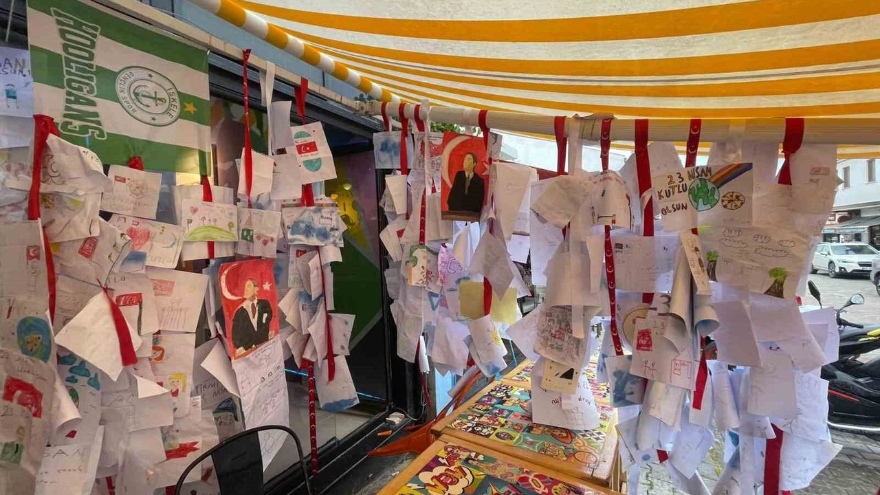 Muğla'nın Datça ilçesinde esnaf Murat Balıkçı'nın 10 yıldır sürdürdüğü 'Askıda Pizza' geleneğinde, 23 Nisan'da Atatürk resmi çizen çocuklara pizza ve oyuncak hediye edilerek yüzlerce çocuğun bayram sevinci paylaşıldı.