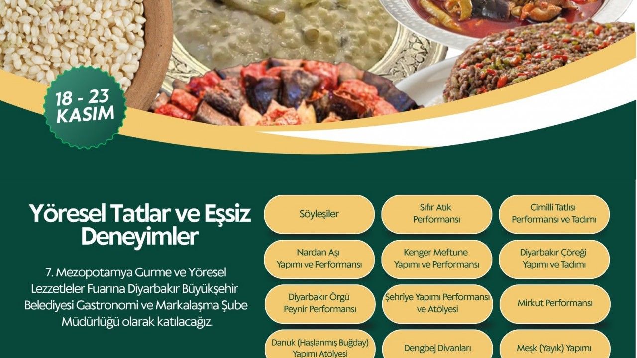 Diyarbakır Büyükşehir Belediyesi, 18-23 Kasım tarihleri arasında düzenlenecek 7. Mezopotamya Gurme Fuarında Diyarbakır mutfağını tanıtacak.