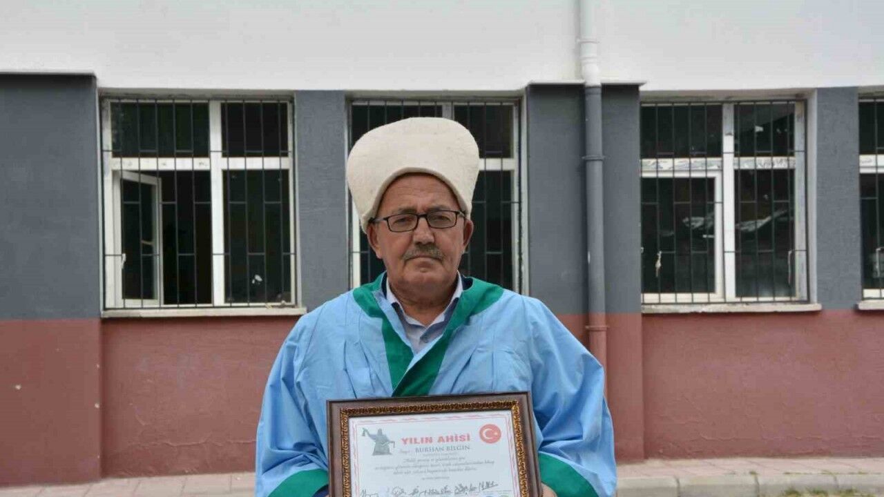 2025 yılı ahisi seçilen 39 yıllık radyatör ustası Burhan Bilgin’e ahilik kıyafeti, belgesi ve plaketi de Kaymakam Fatih Bayram ve Belediye Başkanı Erkan Kara tarafından verildi.