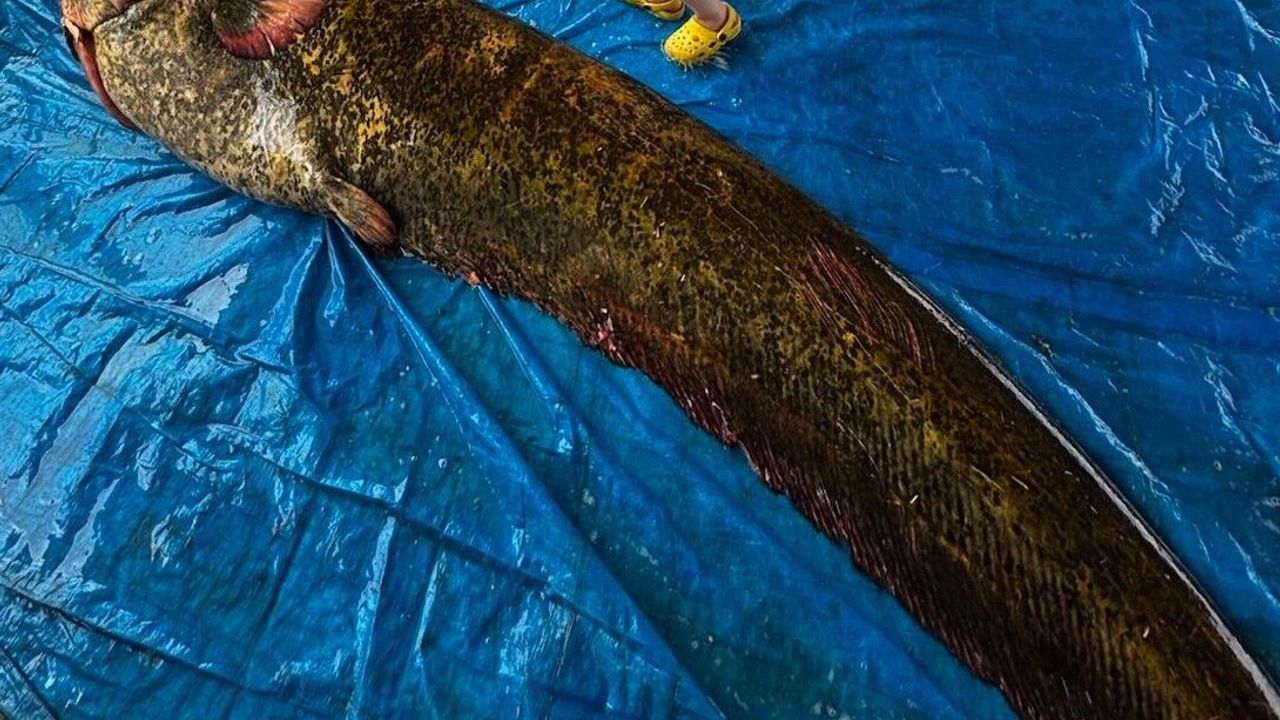 Manisa’nın Köprübaşı ilçesindeki Demirköprü Baraj Gölü’nde 114 kilogram ağırlığında ve 2.15 metre boyunda dev bir yayın balığı yakalandı.