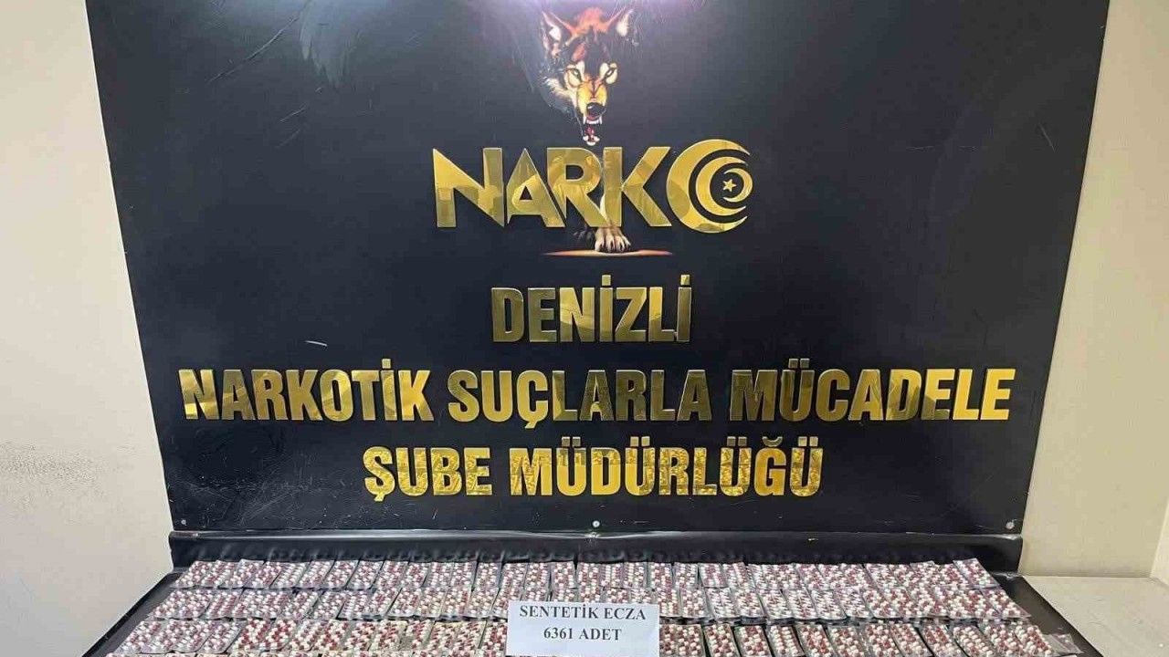 Denizli Emniyet Müdürlüğü Narkotik Suçlarla Mücadele Şube Müdürlüğüne bağlı ekipler il dışından kente uyuşturucu madde sevkiyatı istihbaratı üzerine harekete geçti. Uyuşturucu maddelere kente getirecek şahısları tespit eden narkotik timleri 3 şüpheliyi adım adım teknik ve fiziki takibe aldı. Kısa süreli fiziki ve teknik takibin ardından narkotik timleri 3 şüpheli şahsa operasyon düzenledi. Operasyon kapsamında şüphelilerin üst ve eşya aramalarında 6 bin 361 adet sentetik ecza hap ele geçirildi. Gözaltına alınan 3 şüpheli hakkında işlem başlatıldı.