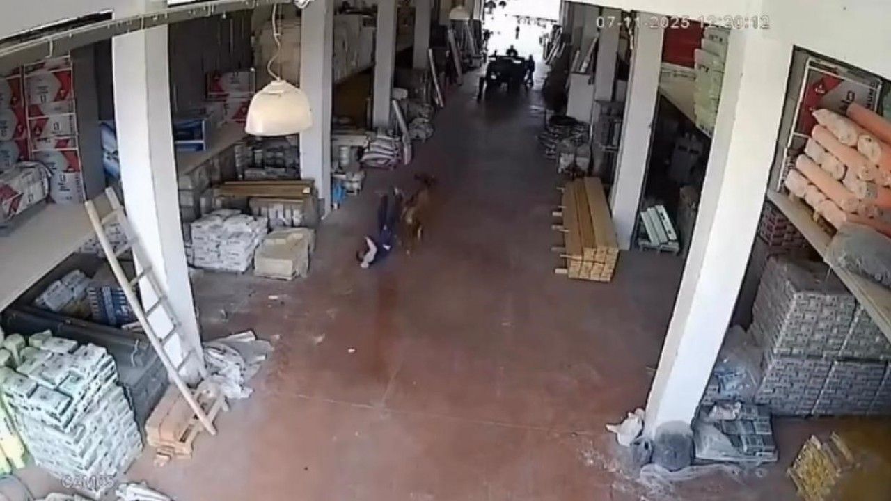 O anlar ise iş yerinin güvenlik kameralarına yansıdı. Görüntülerde, depoya giren ineğin yürüyen bir vatandaşa çarparak düşürdüğü görülüyor. Daha sonra üzerlerine koşan inekten çalışanlar son anda kurtuluyor. İnek daha sonra kendisini uzaklaştırmaya çalışan vatandaşın arkasından koşmaya başlıyor.