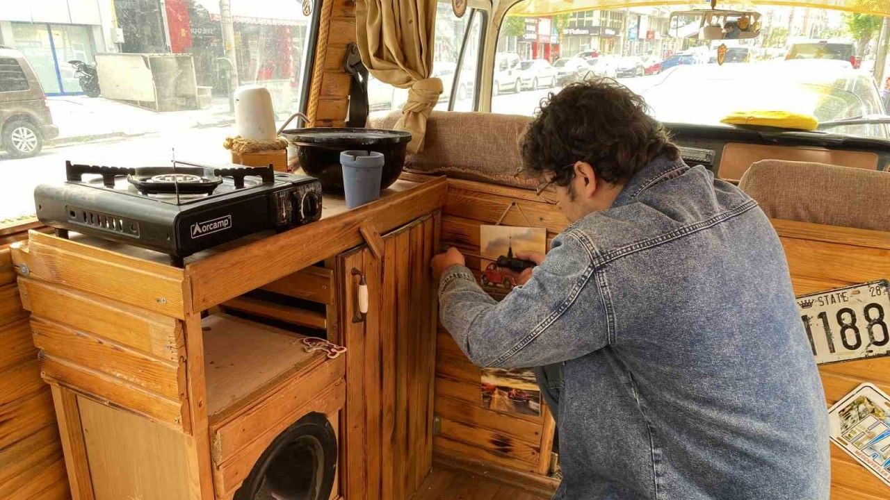 Kahramanmaraş’ta meydana gelen depremi bizzat yaşayan ve ailesinden 16 kişiyi kaybeden Mesut Soyalan, afet sonrası tüm eşyalarını yükleyip Eskişehir’e geldiği minibüsü karavana dönüştürdü.