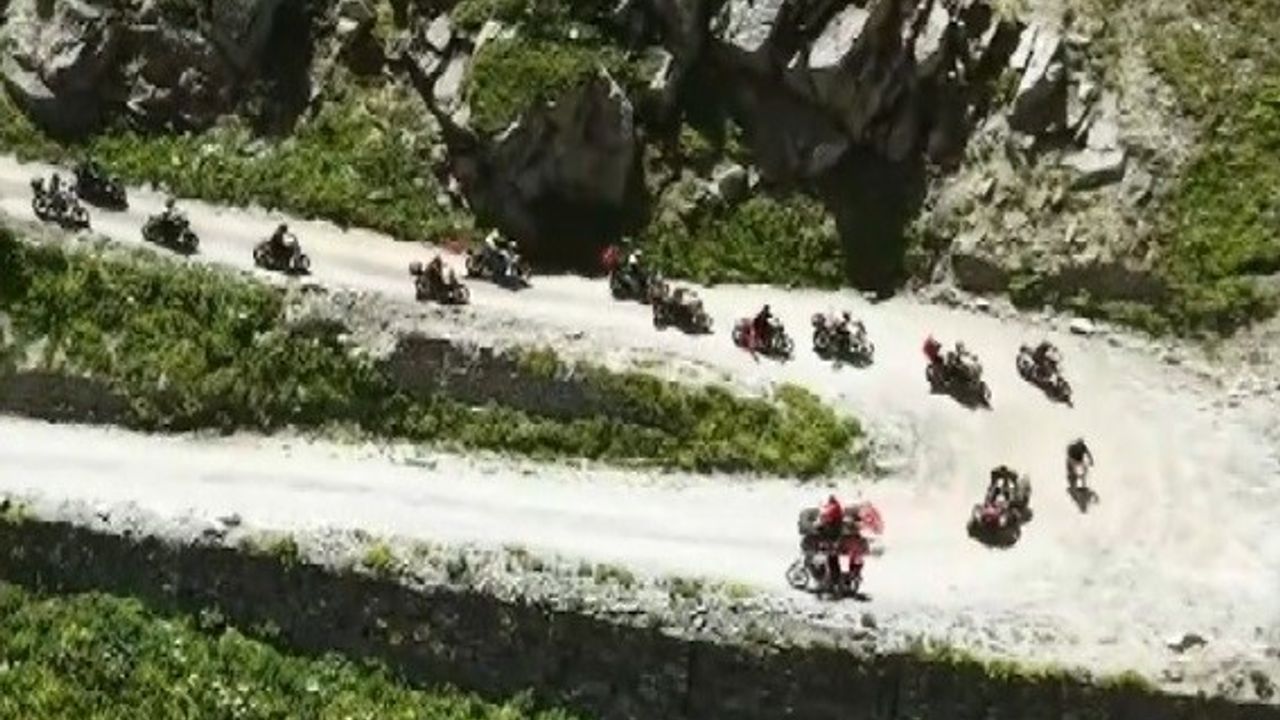Trabzon ile Bayburt arasındaki 3 bin 500 metre yükseklikte yer alan Soğanlı Dağı üzerindeki dik yamaçlardan geçen, ’dünyanın en tehlikeli yolu’ olarak seçilen Derebaşı Virajlarında motosiklet turu gerçekleştirildi.