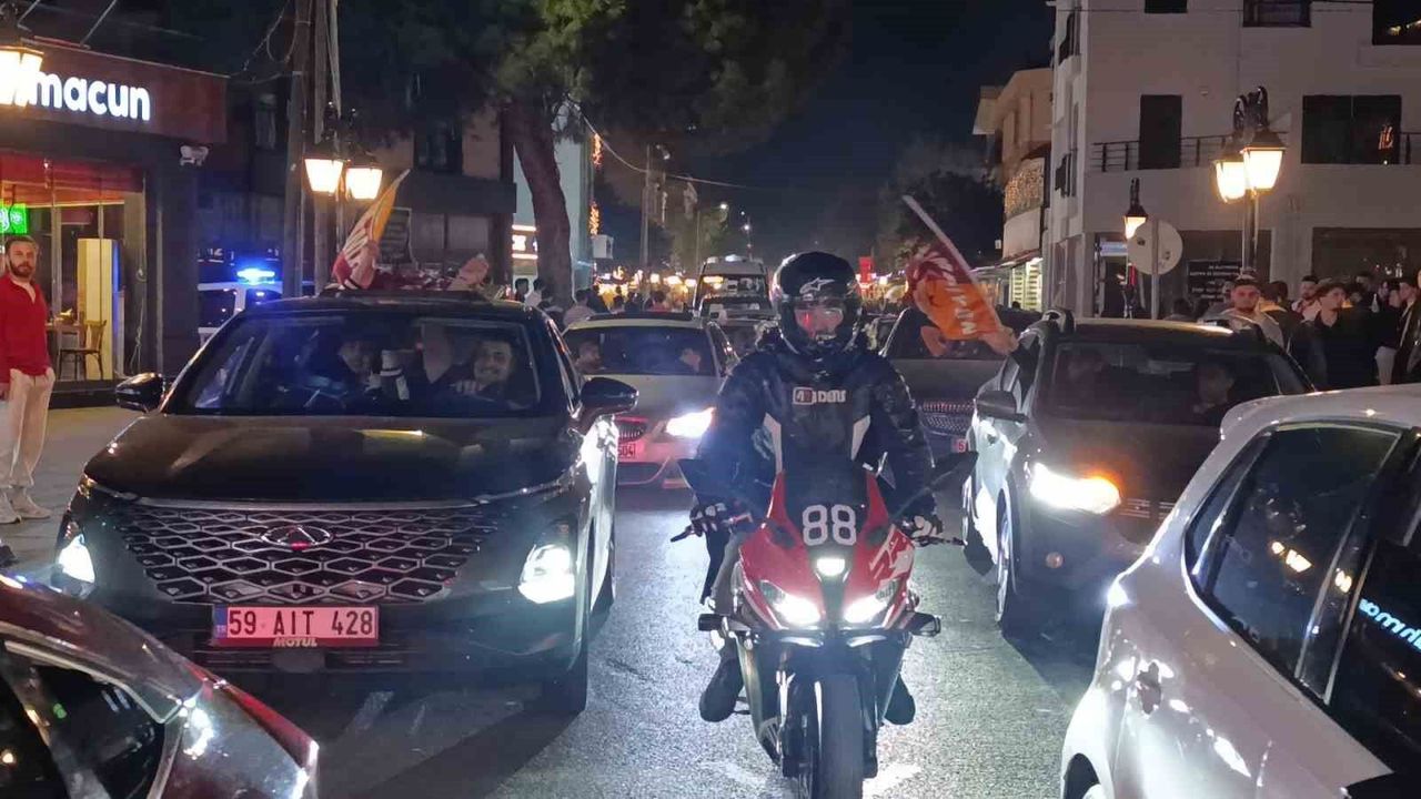 Trendyol Süper Lig'de oynanan derbide Galatasaray'ın Fenerbahçe'yi farklı mağlup etmesinin ardından Tekirdağ'da taraftarlar sokağa döktü.