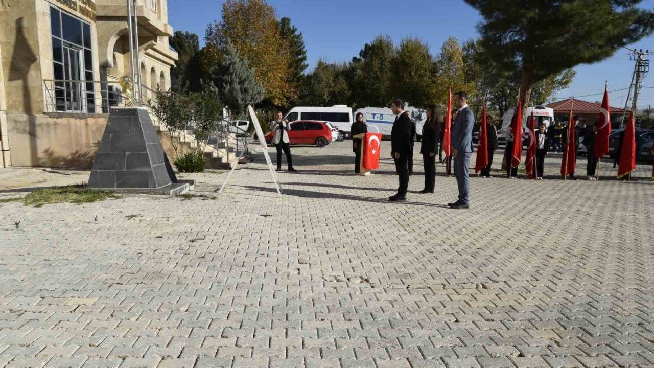 Programın ilki Dicle Emniyet Amirliği bahçesinde Atatürk anıtına İlçe Milli Eğitim Müdürü Mustafa Sabır’ın öğretmenler eşliğinde çelenk sunmasıyla başladı. Şehit Bilal Dicle Anadolu İmam Hatip Lisesi’nde görev yapan Elif Korkmaz’ın sunduğu çelenk sunma töreni, saygı duruşu ve İstiklal Marşı’nın okunmasıyla sona erdi.