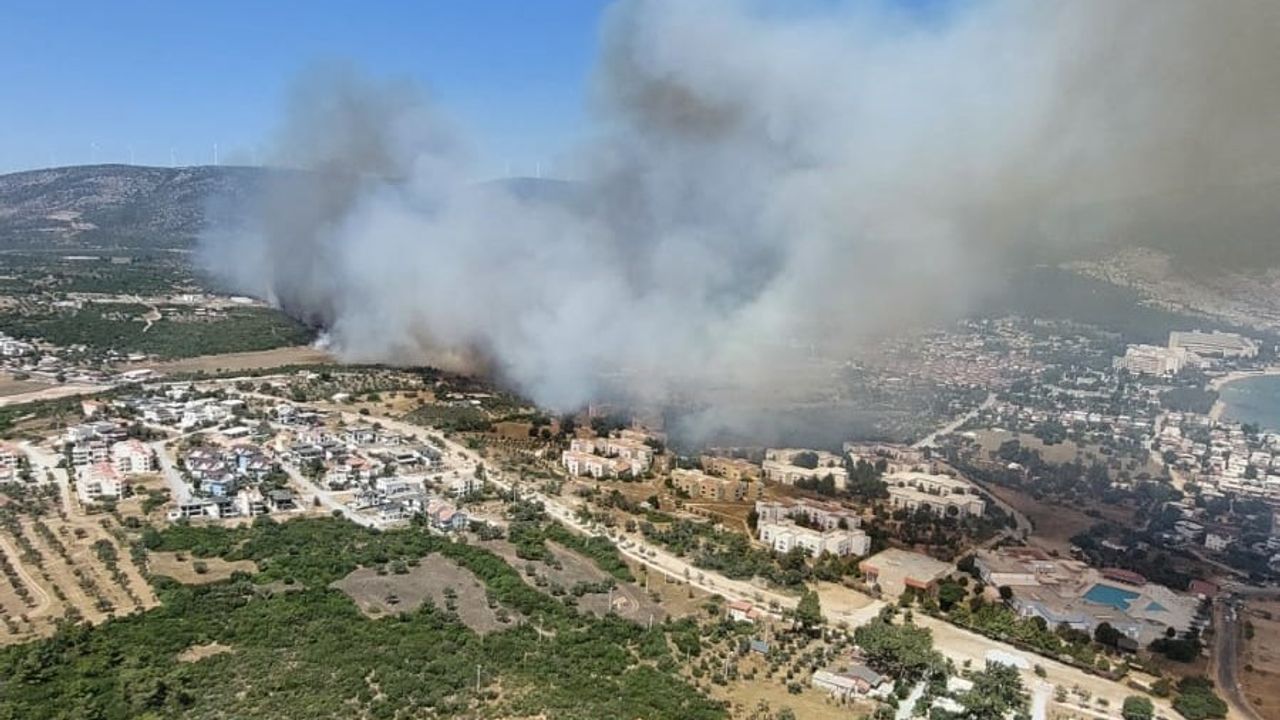 Aydın’ın Didim ilçesinde makilik alanda çıkan yangını söndürme çalışmaları devam ediyor.