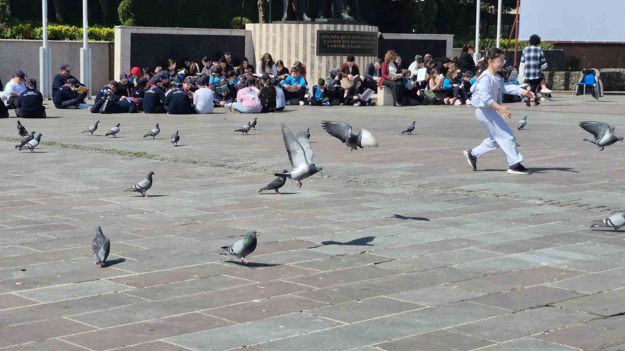 Bartın'da kent meydanında gerçekleşen sessiz kitap okuma etkinliğine katılanlar, çevredeki ses ve gürültüye rağmen pür dikkat kitap okuyarak, dikkat çekmeyi başardı.