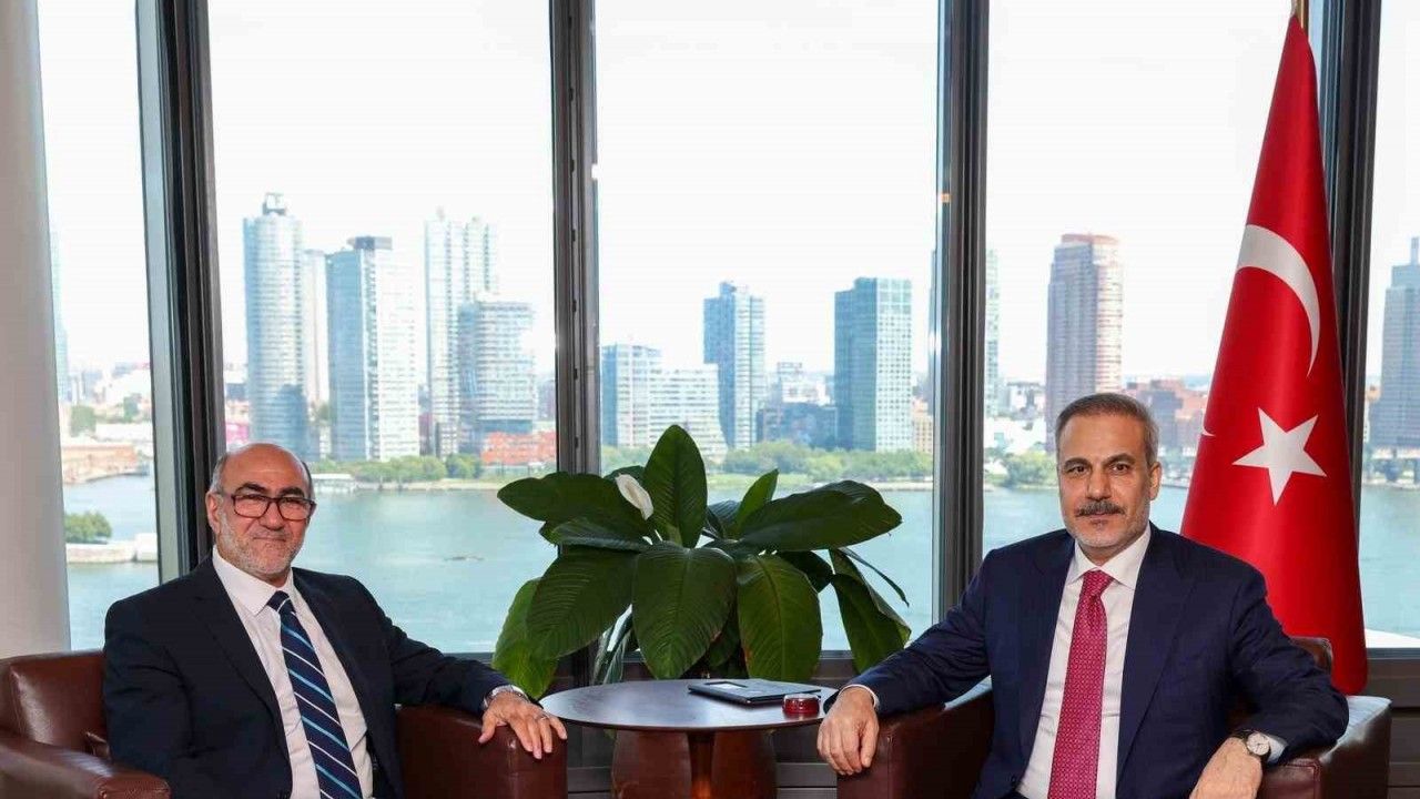 Dışişleri Bakanı Hakan Fidan, 2’nci gayrimeşru Kıbrıs toplantısı için bulunduğu ABD’nin New York şehrindeki temaslarını sürdürüyor. Bakan Fidan, New York’taki Türkevi’nde ABD Müslüman Kuruluşlar Konseyi Başkanı Usame Cemal’i kabul etti.