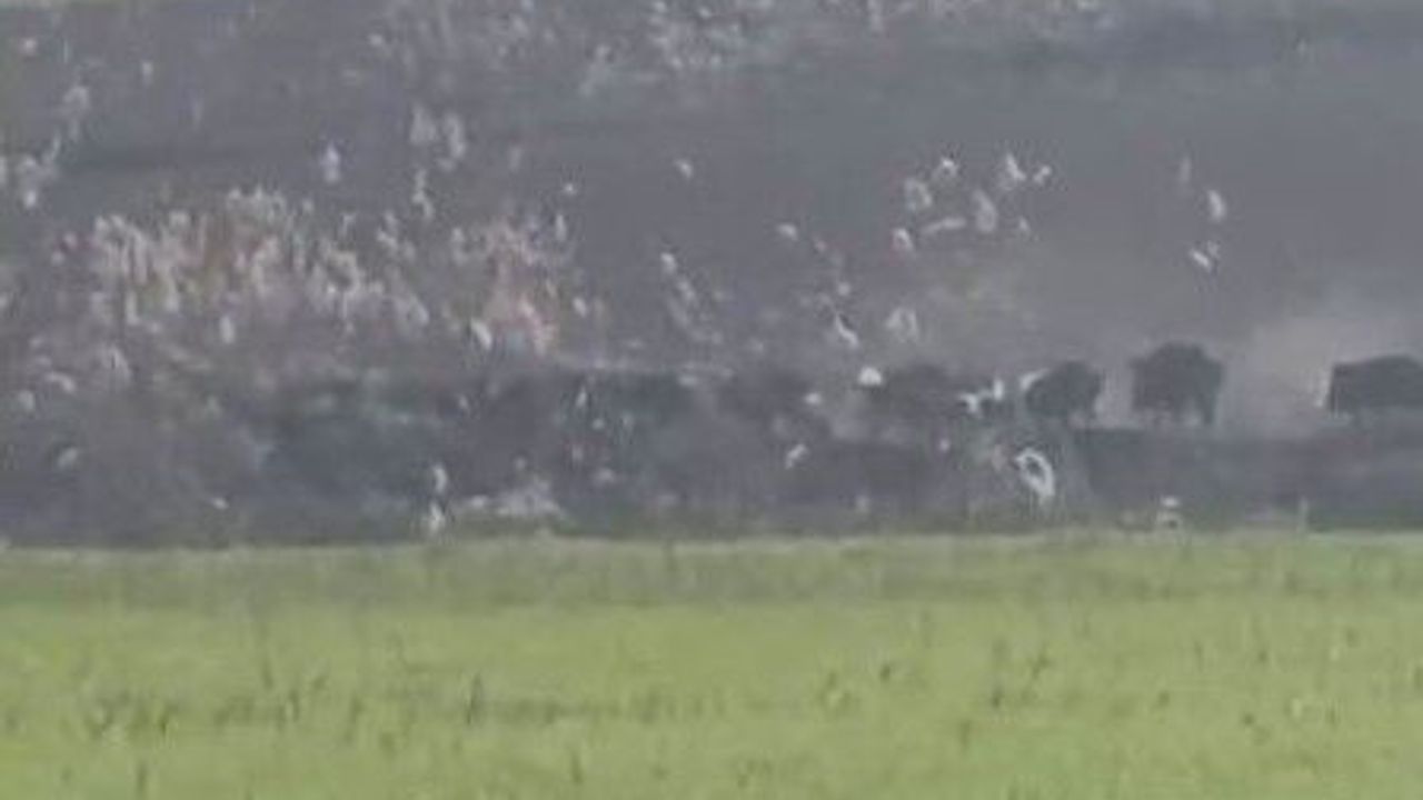 Diyarbakır'ın Çınar ilçesinde aç kalan domuz sürüsü tarlada yiyeyek ararken görüntülendi.