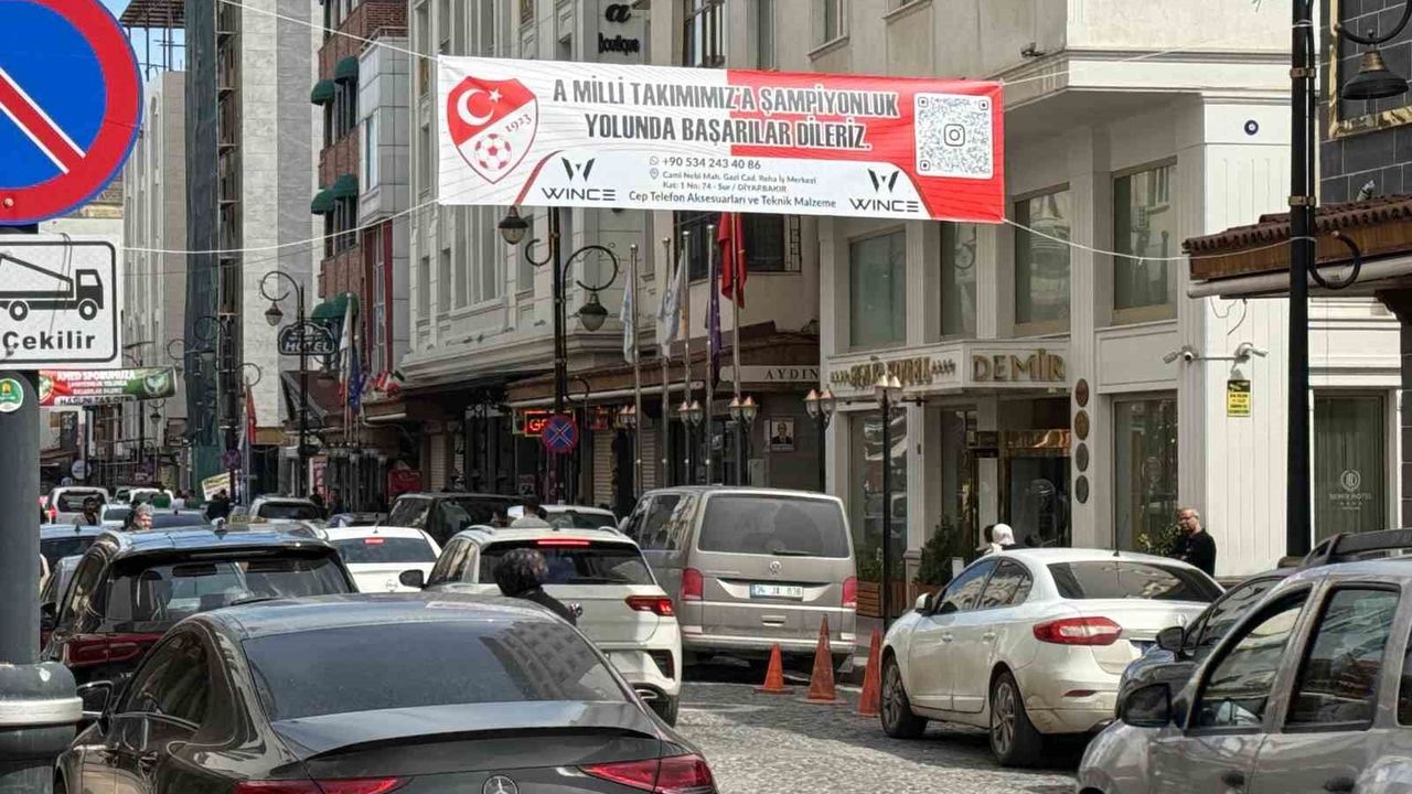 Diyarbakır'ın Sur ilçesinde esnaf, A Milli Futbol Takımına destek amacıyla Gazi Caddesi'nin farklı noktalarına pankartlar astı.