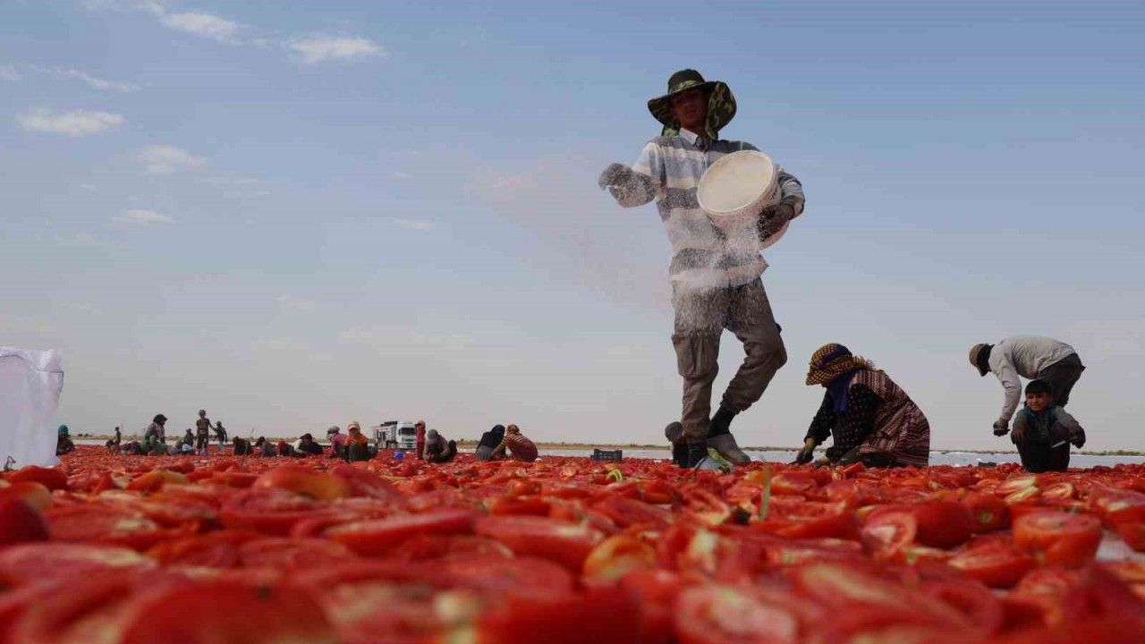 Hasat edilen ve alınan domatesler, işçiler tarafından serilen sentetik kumaş üzerine ikiye bölünüp tuzlanıyor. Kentte 40 derece üzeri kavurucu sıcakta yapılan bu işlemin ardından toplanan domatesler, işlendikten sonra İtalya, Fransa ve İngiltere gibi Avrupa’nın birçok ülkesine ihraç edilip meze ve pizza sosu olarak kullanılıyor.