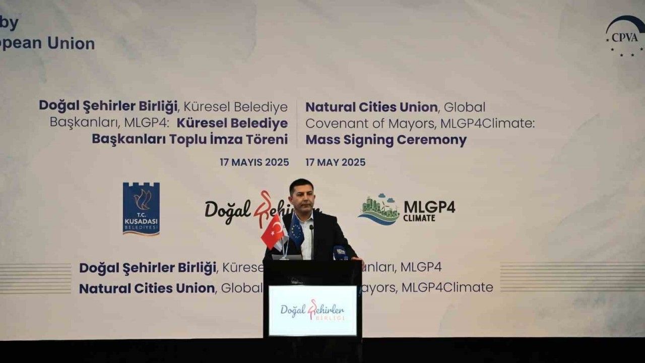 İmza töreninde konuşan Doğal Şehirler Birliği ve Kuşadası Belediye Başkanı Ömer Günel, "Bugün burada, insanlık olarak karşı karşıya olduğumuz en büyük ortak sınavlardan biri için, iklim değişikliğiyle mücadelede kararlı bir irade ortaya koymak üzere bir aradayız. İklim krizi, sadece küresel ölçekte ele alınması gereken bir mesele değil, aynı zamanda yerelden başlayan bir sorumluluk meselesidir. Çünkü çözümün anahtarı, yaşadığımız şehirlerde, mahallelerde, yerel yönetimlerin vizyon ve kararlılığıyla şekillenmektedir. İşte bu yüzden bugün burada toplanmamız çok anlamlı ve önemli. Doğal Şehirler Birliği üyesi belediyelerin Küresel Belediye Başkanları Sözleşmesi’ne hep birlikte imza atmış olması çok önemli. Bu sadece sembolik bir tören değil, ortak irademizin, birlikte hareket etme kararlılığımızın ve doğaya, yaşanabilir kentlere olan bağlılığımızın güçlü bir ifadesidir. Doğal Şehirler Birliği çatısı altında bu adımın atılması, yalnızca Türkiye’de değil, bölgesel ve küresel ölçekte yerel yönetimlerin iklim mücadelesine verdiği önemin altını bir kez daha çizmektedir. Bu adımın bir Avrupa Birliği projesiyle destekleniyor olması da, yerelden küresele uzanan iş birliğinin ve dayanışmanın en somut göstergesidir" diye konuştu.