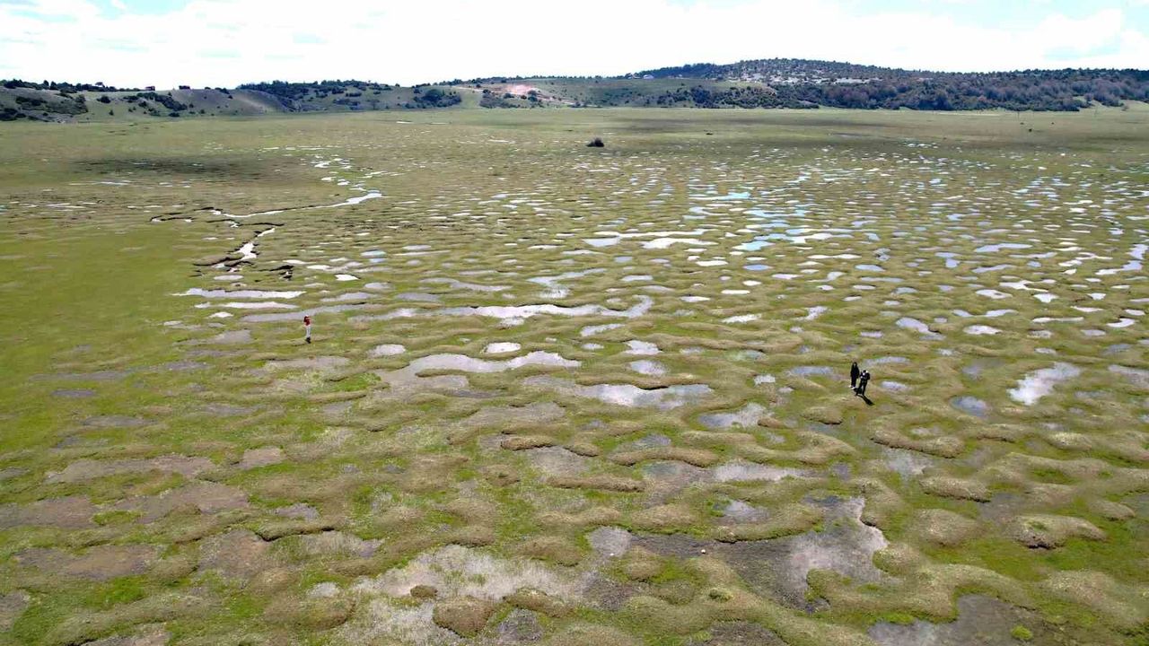 Sakarya'nın Taraklı ilçesinde yer alan ve bin 100 metre rakıma sahip Karagöl Yaylası, şehrin en büyük yaylalarından biri olma özelliğini taşıyor. Şehir merkezine yaklaşık 100 kilometre uzaklıktaki bölge, köknar, kayın ve çam ağaçlarıyla kaplı yoğun ormanlarla çevrili bulunuyor. 567 hektarlık geniş alana sahip olan bölge, bol oksijenli havası ve soğuk içme sularıyla adeta doğal bir terapi merkezi niteliği taşıyor. Karstik özellikleri ve düdenleriyle öne çıkan alan, ilkbaharda suyla kaplanarak eşsiz bir manzara sunuyor. Adını, yağışların ardından düdenlerde biriken suların uzaktan bakıldığında göl görünümü oluşturmasından alan Karagöl, bu özelliğiyle dikkat çekiyor. Havadan kaydedilen görüntülerde, karstik oluşumların meydana getirdiği çöküntüler ve yıl boyunca su akışıyla şekillenen menderesler net şekilde gözlemlendi. Toprak yüzeyindeki dalgalı desenler ve kıvrılarak ilerleyen su kanalları, bölgenin jeolojik karakterini ortaya koyarak benzersiz bir görünüm oluşturuyor. Doğa yürüyüşleri, yayla turizmi ve fotoğraf safarileri için uygun şartlar sunan bölgede geleneksel yaşam da sürdürülüyor. Karagöl Yaylası; doğal peyzajı, zengin florası ve jeomorfolojik özellikleriyle hem bilimsel çalışmalar hem de doğa turizmi açısından önemli bir potansiyel barındırıyor.