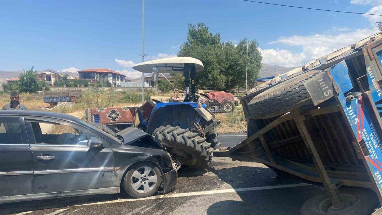 Doğanşehir’de otomobilin traktör römorkuna çarpması sonucu meydana gelen kazada 2 kişi yaralandı, römork devrildi.