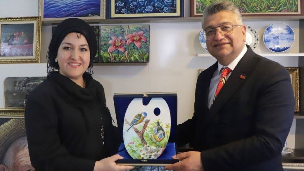 Sanatına adadığı 30 yılı geride bırakan Ressam Dilek Kocaman Yılmazer, Rektör Kızıltoprak’a yeni projeleri hakkında bilgi verdi. Prof. Dr. Süleyman Kızıltoprak’ın nazik ziyaretinden duyduğu memnuniyeti dile getiren Yılmazer, günün anısına Rektör’e hediyelerini takdim etti. Bu anlamlı ziyaret, üniversite ve yerel sanat camiası arasındaki iş birliğinin güzel bir örneği olarak değerlendirildi.