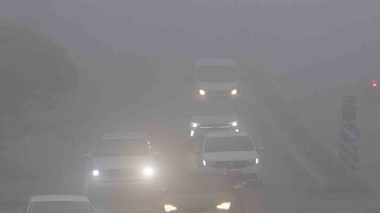 Edirne’de sabah erken saatlerde etkili olan yoğun sis sebebiyle görüş mesafesi bazı noktalarda 50 metreye kadar düştü.