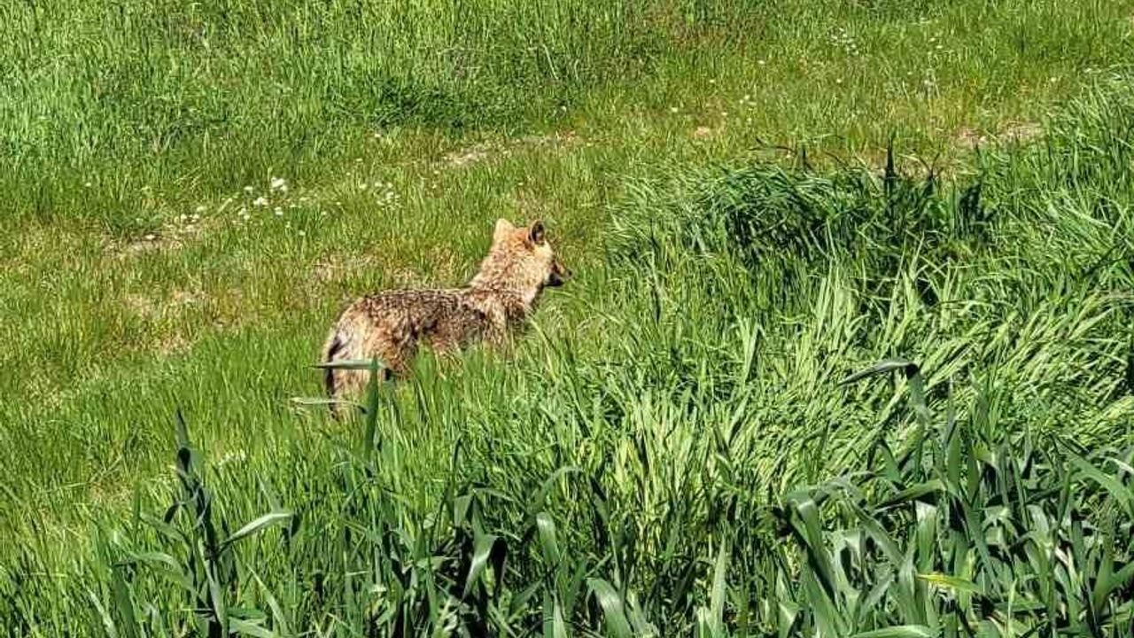 Edinilen bilgilere göre, çiftçi, traktörüyle çalıştığı sırada aniden ortaya çıkan çakalı fark etti. Bölgede nadir görülen yaban hayvanının bir süre alanda dolaştığı, traktöre ve sürücüye karşı temkinli davrandığı görüldü.