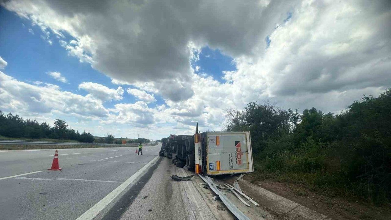 Edirne-Babaeski yolunda kontrolden çıkan tırın devrildiği kazada sürücü yaralandı.