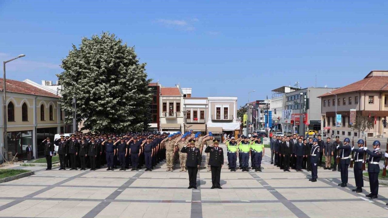 Ülkenin bölünmez bütünlüğünü korumak, huzur ve güvenliği sağlamak için gösterdiği özverili hizmetlerle köklü bir kuruluş olan Jandarma Teşkilatı’nın kuruluşunun 186’ıncı kuruluş yıl dönümü etkinlikleri çerçevesinde tören düzenlendi. Atatürk heykeli önünde düzenlenen tören, Edirne İl Jandarma Komutanı Albay Mehmet Kasım Ermiş’in çelenk sunumu ile başladı.