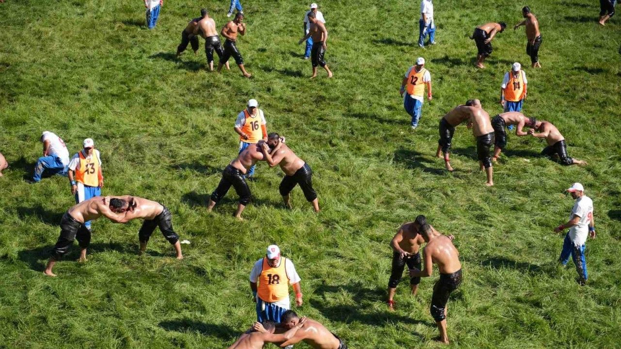 664. Tarihi Kırkpınar Yağlı Güreşleri, Edirne’de başladı. Pehlivanlar Sarayiçi Er Meydanı’nda kıyasıya mücadele ediyor.