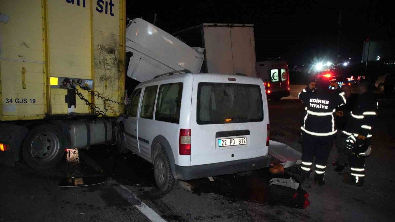 Edinilen bilgiye göre, Edirne-Lalapaşa kara yolunda henüz belirlenemeyen bir nedenle iki tır ile üç otomobil çarpıştı. Çarpışmanın etkisiyle araçlar hurdaya dönerken, kaza yeri adeta savaş alanına döndü. İhbar üzerine olay yerine çok sayıda itfaiye, sağlık ve jandarma ekibi sevk edildi. Ekipler, araçlarda sıkışan yaralıları kurtarmak için çalışma başlattı. İlk belirlemelere göre kazada 1 kişinin hayatını kaybettiği öğrenilirken, 2 yaralı ise ambulanslarla hastanelere sevk edildi.
