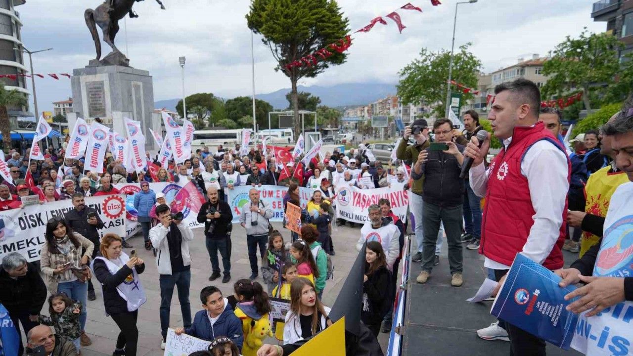 Balıkesir’in Edremit ilçesinde işçi sendikaları öncülüğünde 1 Mayıs Emek ve Dayanışma Günü dolayısıyla yürüyüş ve kutlama programı düzenlendi.
