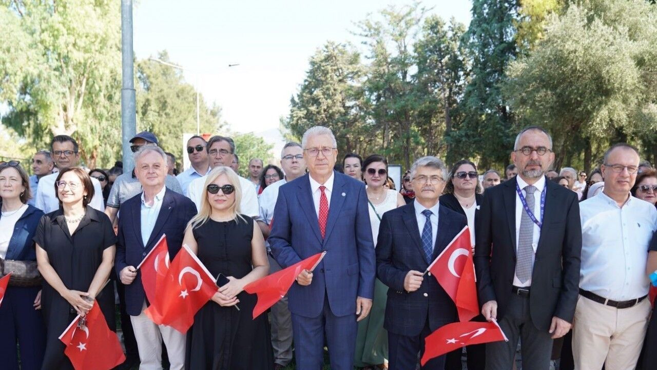 Rektör Prof. Dr. Necdet Budak, "Bugün, 15 Temmuz gecesinde kaybettiğimiz 251 vatandaşımızın ve yaralanan 2196 vatandaşımızın acısını hala yüreklerimizde hissediyoruz. Ülkemize yönelen her türlü tehdide karşı canlarını feda eden şehitlerimize ve kahramanca mücadele eden gazilerimize karşı hepimizin sorumlulukları bulunuyor. Bizler, bugün istiklal ve istikbalimizi, cumhuriyetimizi ve kazanımlarını, milli mücadelenin ardında var olan ve bugün hala yaşattığımız şanlı ruha borçluyuz. Özgürlüğüne yöneltilen her türlü tehdide karşı benzersiz bir mücadele ortaya koyan ataların torunları olarak, bizler de vatanımıza ve değerlerimize aynı kararlılıkla sahip çıkmalıyız. Tam da bu nedenle 15 Temmuz gecesinde Türk Devleti’ni ve halkını kaba kuvvetle hizaya getirmeye çalışan bu alçak darbe girişimini unutmamalıyız. Bu tarihi gecede milletimizin iradesini hedef alan hain girişimin ardındaki yapılanmayı ve bu girişimin etkilerini anlamalıyız ki bağımsızlığımızı, birlik ve beraberliğimizi hedef alan her türlü saldırıya, tıpkı Malazgirt’te, Çanakkale’de, Milli Mücadele’de ve son olarak 15 Temmuz’da olduğu gibi karşı koyalım. Bizler Ege Üniversitesi olarak gerek kampüsümüzde şehit ve gazilerimizin adını yaşattığımız 15 Temmuz Demokrasi Anıtı ve 15 Temmuz Şehitleri Hatıra Korusu ile gerek vatanına ve bayrağına bağlı yetiştirdiğimiz nesillerle ülkemizin birlik ve beraberliğinin daimi kılınmasında; demokratik değerlerimizin korunmasında daima devletimizin yanında olacağız. Sözlerime son verirken bugün burada bizlerle beraber olarak demokrasiye, bayrağına, ülkesine ve değerlerine bağlılık gösteren herkese teşekkürlerimi sunuyorum. Bir kez daha aziz şehitlerimizi rahmetle, gazilerimizi şükranla yâd ediyorum. Ruhları şad olsun" dedi.