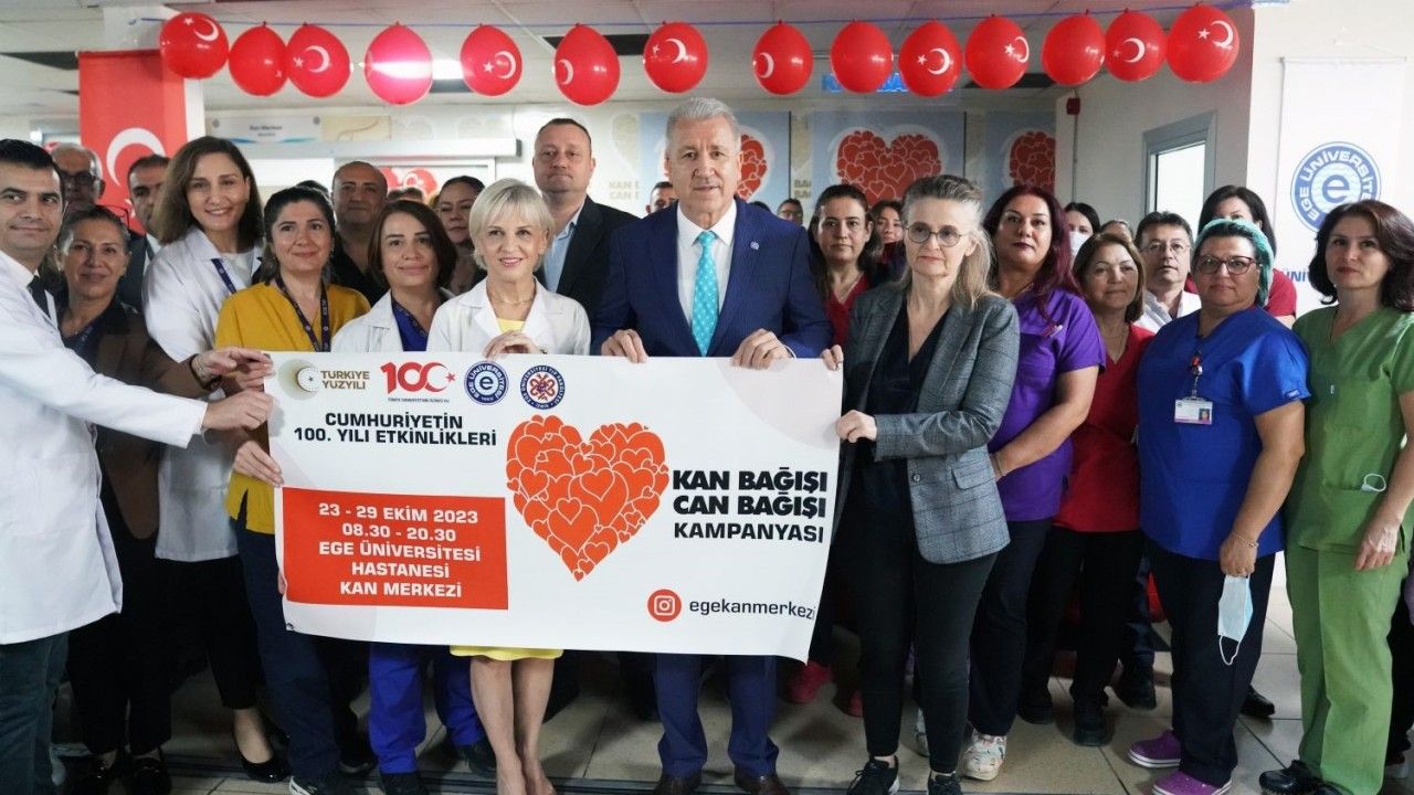 Ege Üniversitesi (EÜ) Cumhuriyetin 100. yılı etkinlikleri kapsamında, Ege Üniversitesi Tıp Fakültesi Hastanesi Kan Merkezi tarafından kan bağışına dikkat çekmek, toplumun kan bağışı konusundaki farkındalığını artırmak ve kan bağışını teşvik etmeyi amacıyla “100.Yıl Kan Bağışı Can Bağışı Kampanyası” başlatıldı.