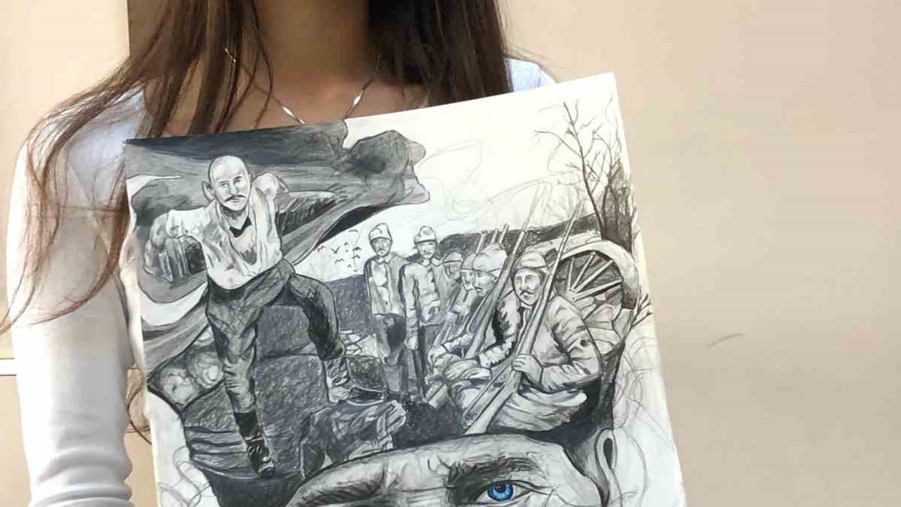 Elazığ’da 16 yaşındaki öğrenci Zehra Karaman’ın 18 Mart Şehitler Anma Günü ve Çanakkale Deniz Zaferi’nin 110. yıl dönümü dolayısıyla kara kalem sanatı ile yaptığı Atatürk portresi hayran bıraktı.