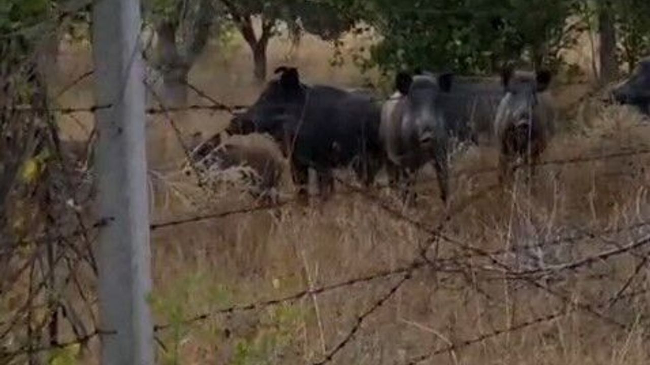 Elmadağ ilçesinde bir tarlaya domuz sürüsü girdi. Durumu fark eden çoban, ses çıkararak domuzları uzaklaştırmak istedi. Korkan sürü kaçtı. Yaşananlarsa cep telefonu kamerasına yansıdı.