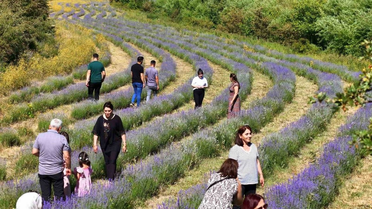 Göz alıcı manzarasıyla adeta bir açık hava stüdyosunu andıran lavanta bahçesi, özellikle sosyal medya içerik üreticileri, fotoğrafçılar ve doğaseverler tarafından büyük ilgi görüyor.