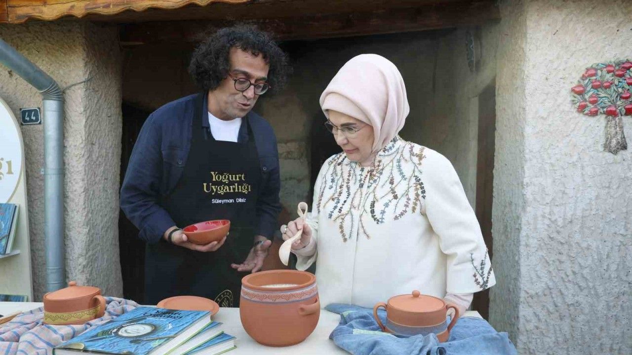 Emine Erdoğan, Türk Mutfağı Haftası kapsamında "Anadoludakiler Kapadokya Pazarı"nın açılış programı için geldiği Nevşehir’de Güray Müzesi’ni ziyaret etti. Burada yazar Süleyman Dilsiz ile Kapadokya’ya özgü çömleğe yoğurt mayalayan Emine Erdoğan, aynı yöntemle daha önce mayalanan yoğurdun da tadına baktı. Yoğurdun mayalanma sürecine ilişkin Dilsiz’den bilgi alan Emine Erdoğan, yoğurdun tadını beğendiğini ifade etti. Emine Erdoğan, yazar Dilsiz’in Kültür ve Turizm Bakanlığı himayelerinde yayınlanan "Yoğurt Uygarlığı" kitabının tanıtımına da katıldı. Emine Erdoğan’a, Kültür ve Turizm Bakanı Mehmet Nuri Ersoy, Sanayi ve Teknoloji Bakanı Mehmet Fatih Kacır ve Nevşehir Valisi Ali Fidan eşlik etti.