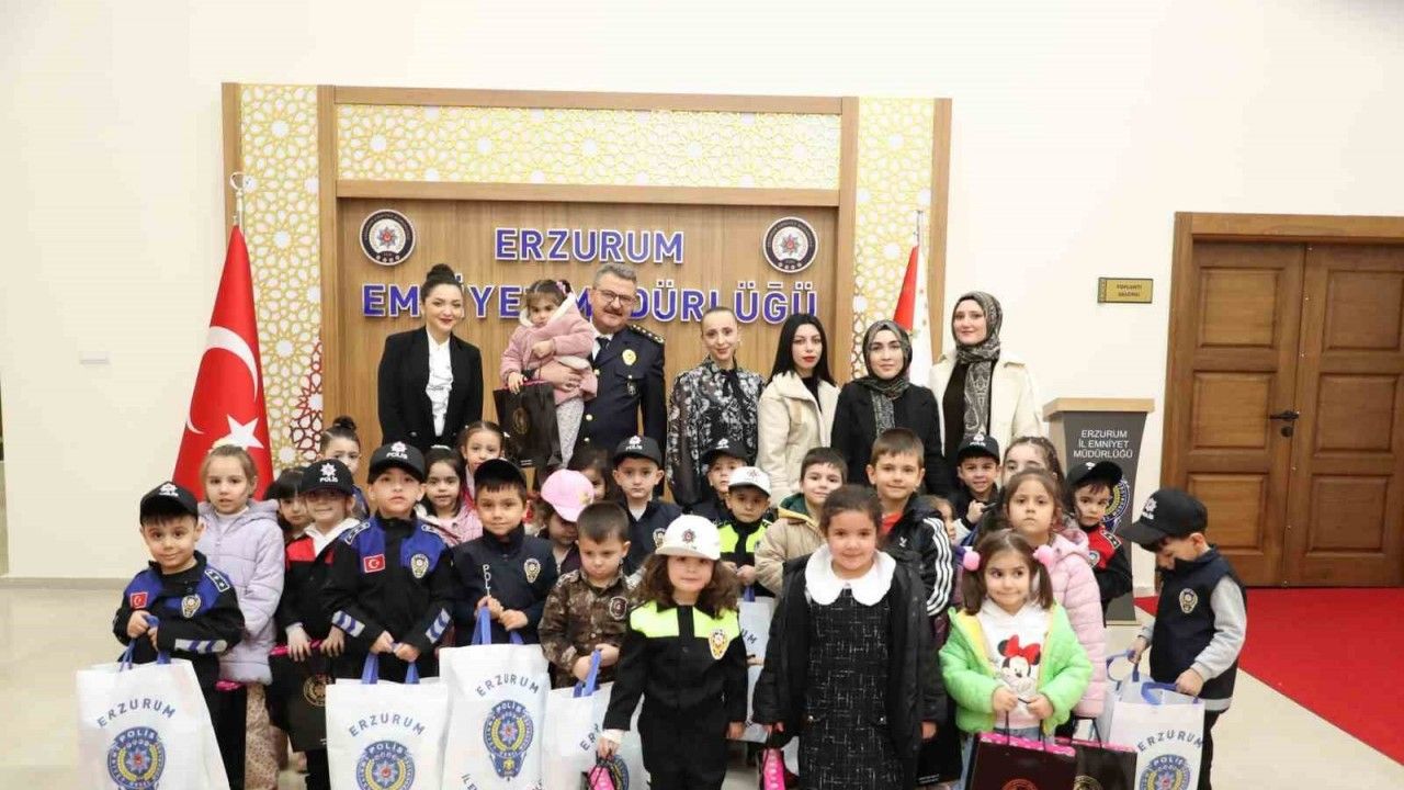 Bir grup anaokulu öğrencisi, öğretmenleriyle birlikte İl Emniyet Müdürü Kadir Yırtar’ı makamında ziyaret etti.