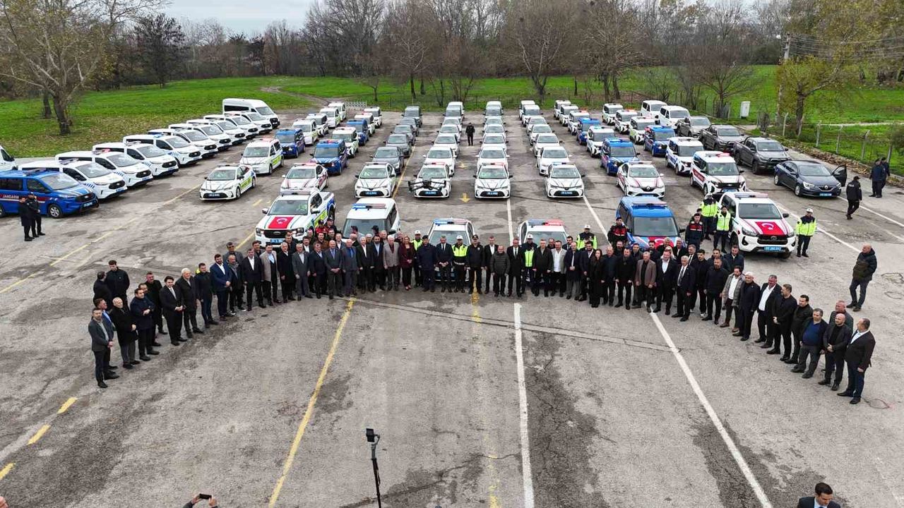 İçişleri Bakanlığı tarafından Edirne İl Emniyet Müdürlüğü'ne 52, İl Jandarma Komutanlığı'na 30 yeni araç tahsis edildi.